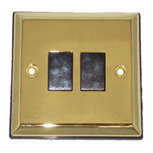 PLAIN BRASS 2G 2W 6A LIGHT SWITCH (BLACK INS)