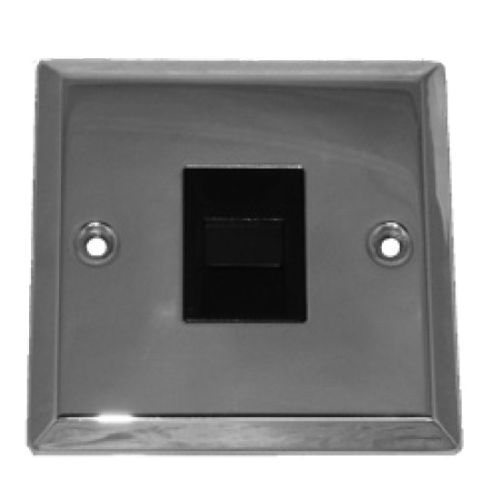 POLISHED CHROME 1G TELEPHONE EXT. SOCKET (BLACK INS)