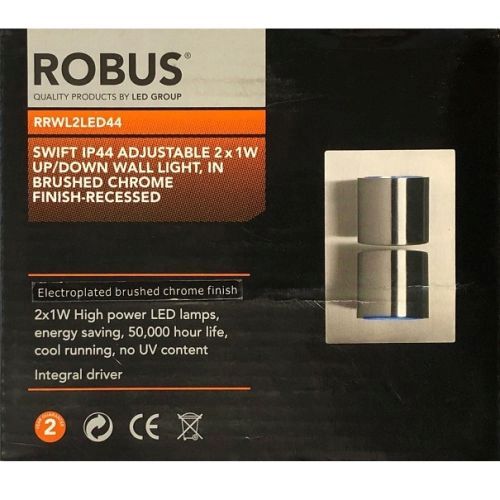 ROBUS SWIFT 2X1W IP44 UP/DOW B/CHR