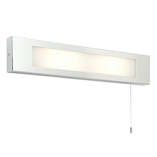 The Saxby 39913 is a wall light with a built in shaver socket, frosted white glass and a chrome trim. This light fitting is supplied with fixing accessories and a pull cord switch, while its IP20 rating means it is suitable for bathroom installation. However the light does require 2 25W E14 golf ball lamps. Dimensions: 100 x 510 x 80mm (H x W x Proj.)