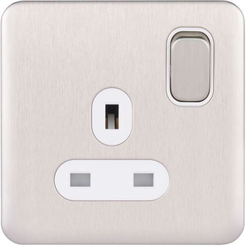 SCHNEIDER LISSE SCREWLESS BRUSHED CHROME 1G 13A SOCKET WHITE INSERT