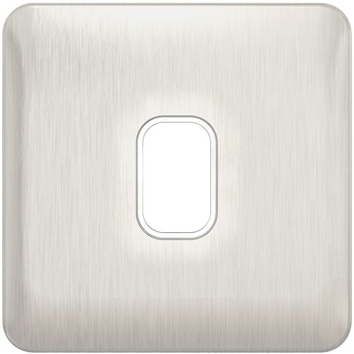 SCHNEIDER LISSE SCREWLESS BRUSHED CHROME 1G GRID PLATE WHITE INSERT