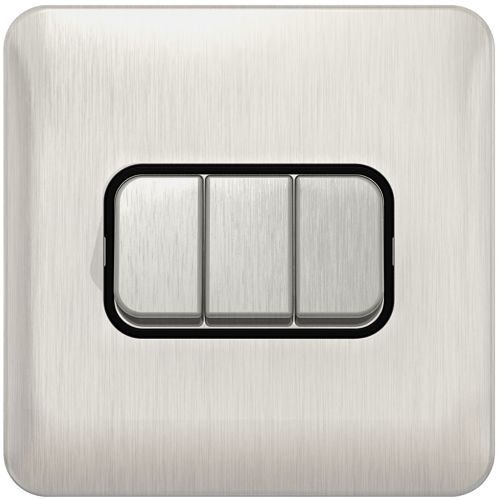 SCHNEIDER LISSE SCREWLESS BRUSHED CHROME 3G 2W SWITCH BLACK INSERT