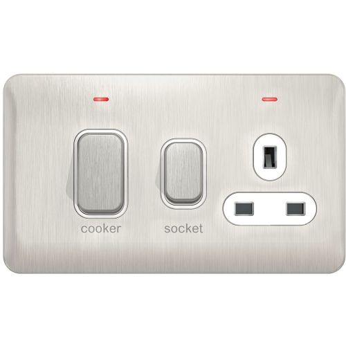 SCHNEIDER LISSE SCREWLESS BRUSHED CHROME 45A CCU + SOCKET WHITE INSERT