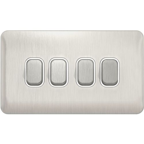 SCHNEIDER LISSE SCREWLESS BRUSHED CHROME 4G 2W SWITCH WHITE INSERT