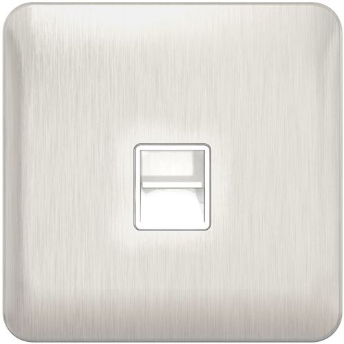 SCHNEIDER LISSE SCREWLESS BRUSHED CHROME SLAVE TEL WHITE INSERT