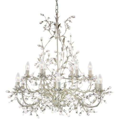 This Almandite cream gold finish 12 Light chandelier with crystal dressing makes an imposing centrepiece for any bedroom, living room or kitchen. The traditional cream and gold finish gives the light a classic look and the crystal dressing is incredibly intricate and elegant, while the twelve lights hang delicately from the ceiling, creating beautiful lighting effects throughout the evening.