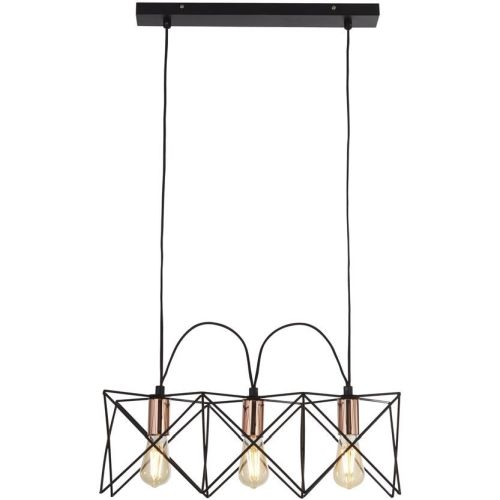SEARCHLIGHT ANTHEA 3LT FRAME CEILING PENDANT – BLACK METAL & COPPER