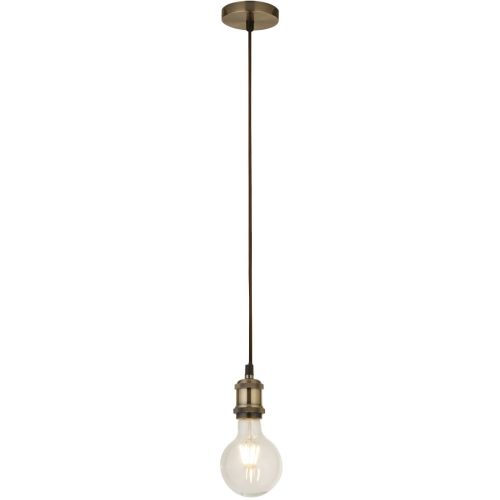 Hung sungularly to light halls, porches or key areas of any room, or in multiples over dining tables, kitchen bars and even conservatories, the antique brass 1 light cable suspension has a brown textile cord that hangs at a maximum of 1.5m but can be adjusted when installed.