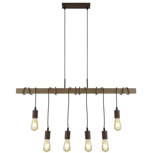 Searchlight Barn 6Lt Pendant – Black Metal & Wood