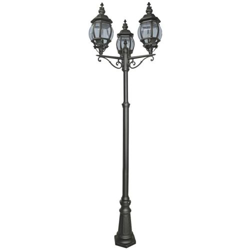 This Bel Aire 3 light outdoor post lamp with clear glass will make your home look like an exclusive residence. The style is traditional, with a decorative wrought iron effect and clear glass panels adding a touch of elegance. And with three separate lamps, it will light up your drive, pathways and garden beautifully. It is also IP44 rated and fully splashproof to protect against the elements.