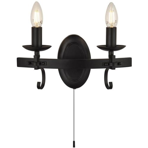The 2 light Cartwheel III wall light finished in a matt black finish with E14 candle lamp holders and a black pull switch. Ideal for a hallway or lounge for reading.