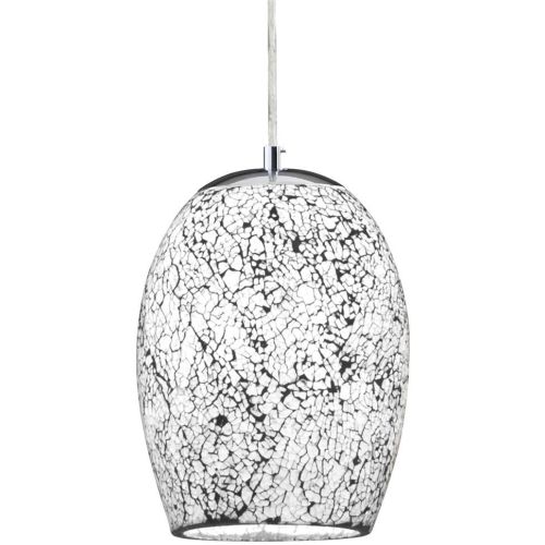 The Crackle white mosaic glass pendant ceiling light with chrome trim makes a stunning centrepiece for any bedroom, living room, dining room or kitchen ceiling. The ornate white Crackle glass effect is a modern trend combining an elegant distinction with stunning good looks, and the oval shaped pendant lights creates a beautiful lighting effect when illuminated. The wire satin suspension allows you to adjust the fitting to the perfect ceiling height.
