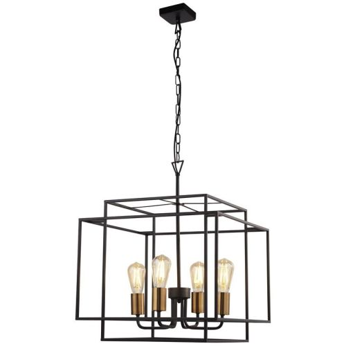 The Crate frame pendant offers an on-trend style for a modern living space. The 4 light metal design is made in matt black finish with gold detail on the lamp holders. The ultra modern design is perfect for all rooms.