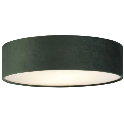 The dark green colour of this large velvet flush ceiling light will add a touch of opulence to any room. The velvet fabric shade surrounds a 2 light opal diffuser making Drum a stunning light source for any room.