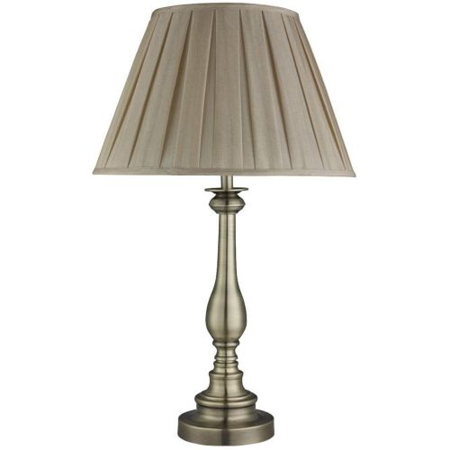 The Flemish table lamp is classic and ornate and an ideal accompaniment to any more traditional decor. The antique brass finish stand has a traditional shapely design and a spindle base, with a tasteful overlapping mink coloured fabric shade at the top. It looks elegant and sophisticated in any setting.