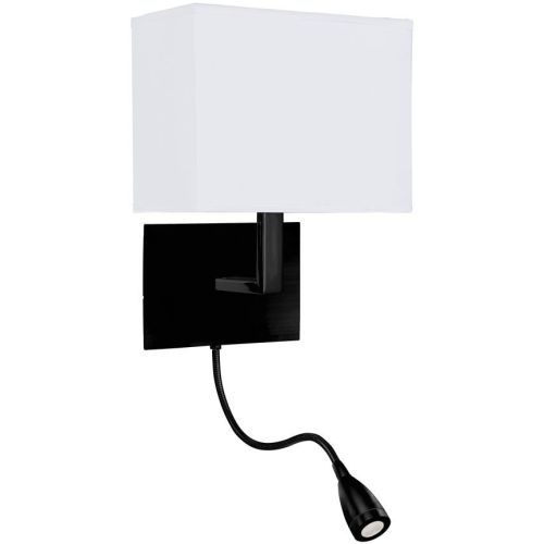SEARCHLIGHT HOTEL WALL LIGHT – MATT BLACK METAL & WHITE FABRIC SHADE
