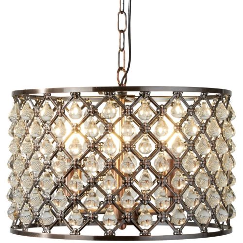 A rustic antique copper fitting with complimenting glass tear drop trim. The large drum pendant features intricate glass embellishment which looks beautiful against the light when lit. Suspend from a high ceiling in a hallway to turn heads.