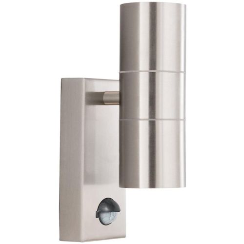 This Metro stainless steel 2 light outdoor light has a motion sensor and is perfect for welcoming you home and deterring would-be intruders. The rectangular wall attachment features a modern motion sensor connected to a stylish cylindrical light, with two lamps providing both uplight and downlight. It is also IP44 rated and fully splashproof to protect against the elements. Complete with LED lamps. LED’s use up to 75% less energy and last up to 20 times longer than incandescent bulbs.
