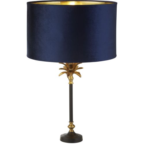 Searchlight Palm Table Lamp – Antique Brass & Black, Navy Velvet Shade