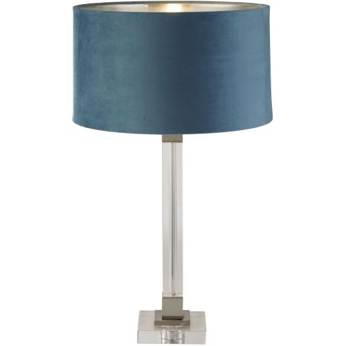 SEARCHLIGHT SCARBOROUGH TABLE LAMP – CRYSTAL, SATIN NICKEL & TEAL VELVET