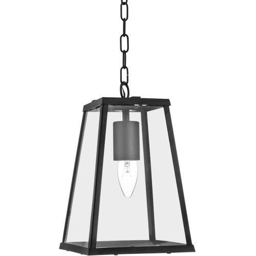 This Voyager matt black tapered bar lantern with clear glass shade has a simple, classic look. The matt black tapered shade has four clear glass panels, which house an attractive centrally positioned light fitting to provide a clear source of light for any room. And the shade hangs elegantly from the ceiling by a slim black chain.