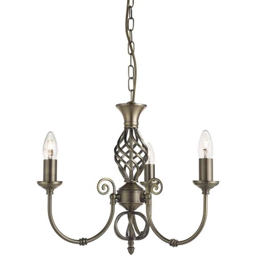This Zanzibar antique brass 3 light ceiling pendant with ornate twisted column makes a great centrepiece for any traditionally styled home. The elegant antique brass finish fitting features intricate twisted metal above and below the centre of the column, with beautiful curved metal arms and three candle style light fittings. And the chain suspension can be adjusted to your own ceiling height.