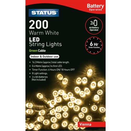 STATUS 200 LED WARM WHITE BATTERY TIMER IN/OUTDOOR LIGHTS