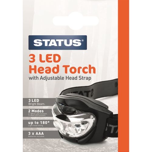 STATUS 3 LED HEADTORCH – BLACK – 6PK