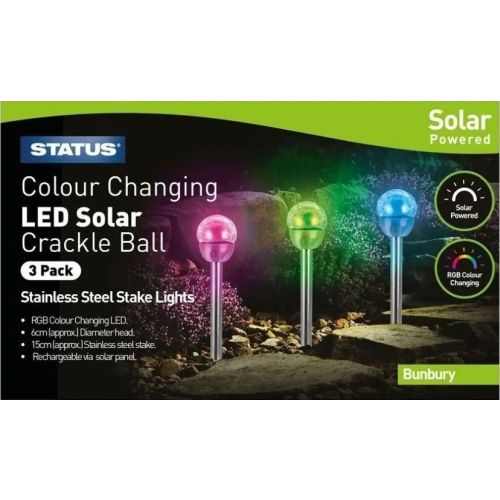 STATUS BUNBURY LED SOLAR COLOUR CHANGING BALL 3PK