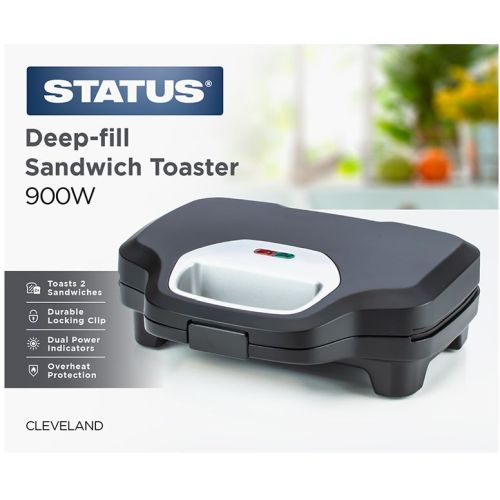 STATUS CLEVELAND 900W 2 SLICE SANDWICH TOASTER -BLACK
