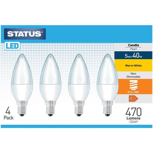 5W = 40W 470 lumens LED Candle SES/E14 Pearl Warm White/2700k Box of 4