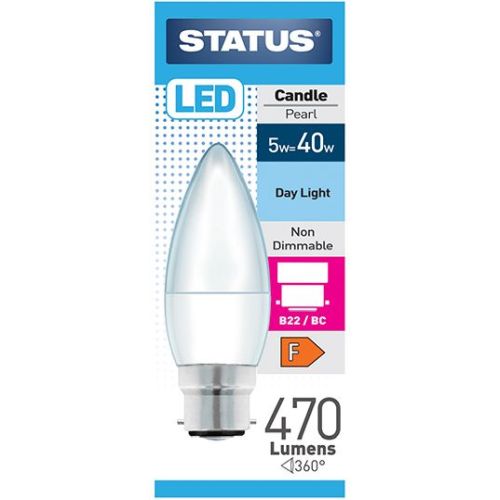 STATUS LED CANDLE 5W=470L=40W BC PEARL D/L
