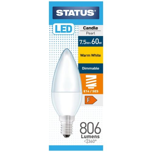 STATUS LED CANDLE 7.5W=806LM.=60W SES DIM OP W/W