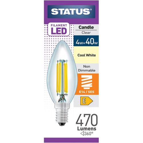 STATUS LED FILAMENT CANDLE 4W=40W SES CLEAR C/W