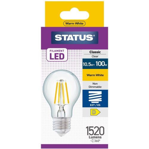 STATUS LED FILAMENT GLS 10.5W=100W ES CLEAR W/W PK10
