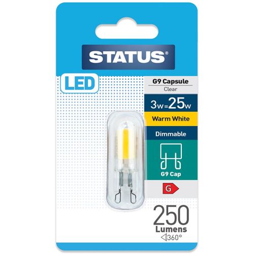 STATUS LED G9 3W=250L=25W 240V B/P W/W DIM
