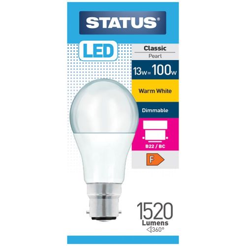 STATUS LED GLS 13W=100W BC DIM OP WW