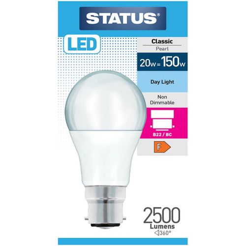 19w = 150w = 2500 lumens – Status – LED – A80 GLS – B22 – PA -Pearl – Day Light – 1 pk box – in White CDU
