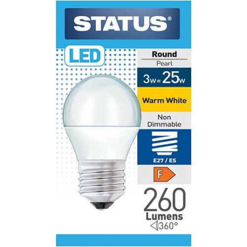 3W = 25W 275 lumens LED Golfball/Round ES/E27 Pearl Warm White/2700k