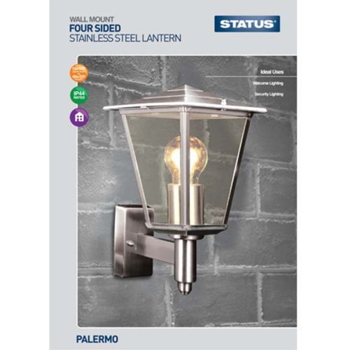 STATUS PALERMO STAINLESS STEEL 4 SIDED LANTERN E27