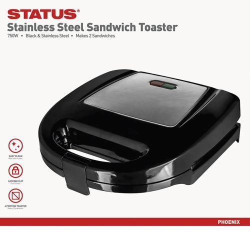 Status Phoenix Non-Stick 2-Slice Sandwich Toaster, 750 W, Stainless Steel/Black