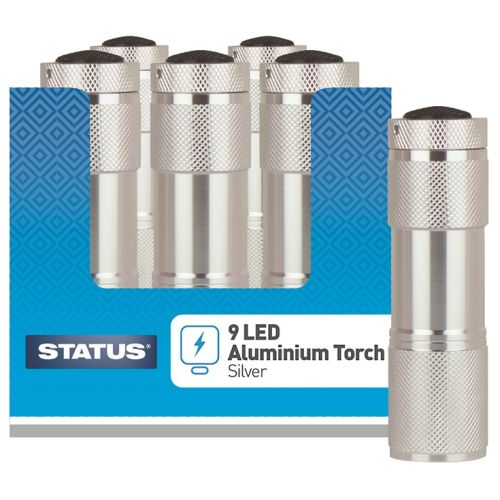 STATUS SILVER 9 LED ALUMINIUM TORCH – TRAY OF 12