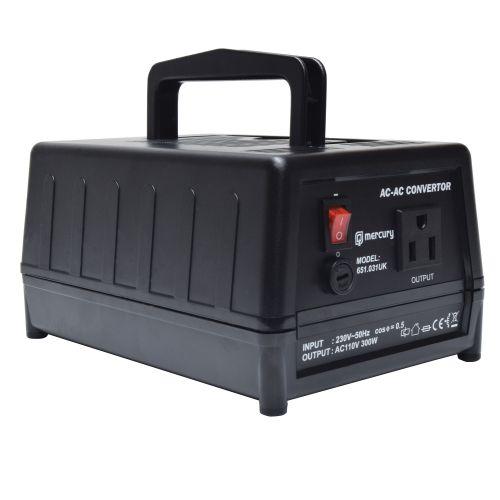 A step-down converter that enables a 110 – 120Vac USA mains voltage device to be powered from a 230-240Vac UK mains outlet.