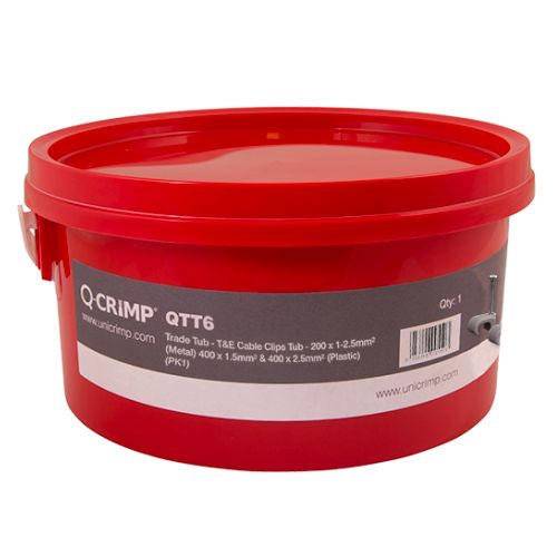 Trade Tub – T&E Cable Clips Tub – 200 x 1-2.5mm² (Metal) 400 x 1.5mm² & 400 x 2.5mm² (Plastic)