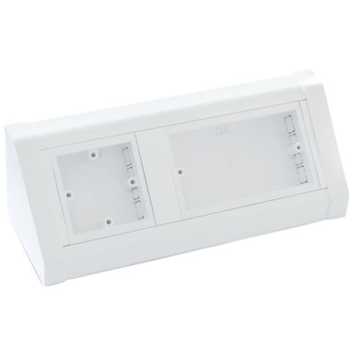 Univolt Bench Trunking is manufactured from uPVC and is fitted with a white uPVC lid. Supplied in White Upvc with white plastic fascia. A full range of moulded and fabricated fittings are available, and Accessory Boxes can be installed at any point along the Bench Trunking system. Our bench trunking units are available in one-gang or two-gang boxes or additional 2 + 1 gang.