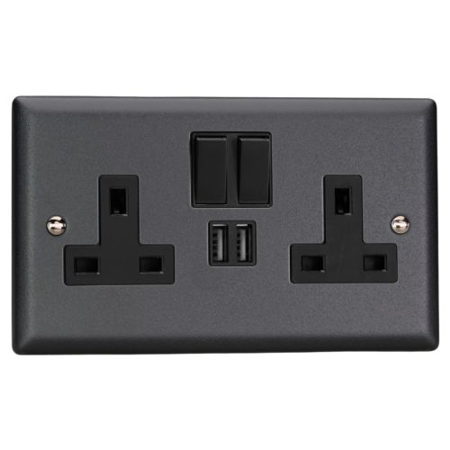 VARILIGHT 2G USB SWITCHED SOCKET MATT BLACK