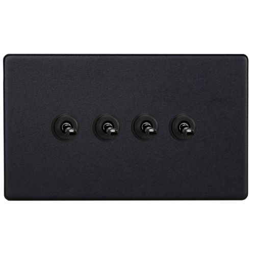 VARILIGHT 4G 2W TWIN PLATE SCREWLESS MATT BLACK TOGGLE SWITCH