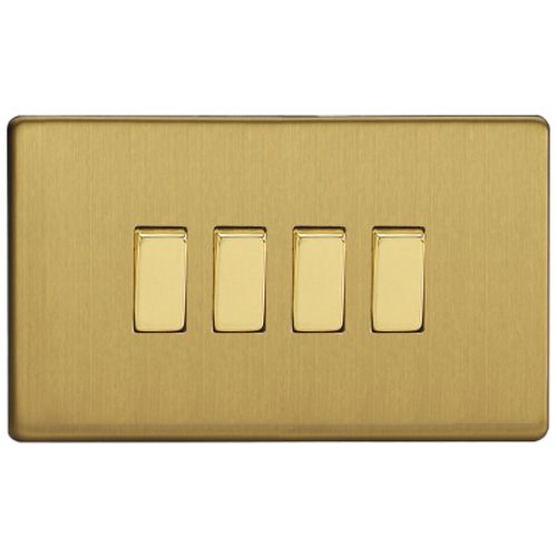 VARILIGHT BRUSHED BRASS SCREWLESS 4G 2W SWITCH (2G SIZE)