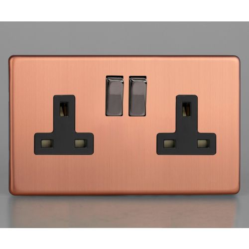 VARILIGHT BRUSHED COPPER SCREWLESS 2G 13A SOCKET BLACK INSERTS